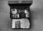 A neatly packed suitcase in the event of Americans having to evacuate a military base. Location: Morocco Date taken: 1957