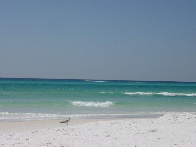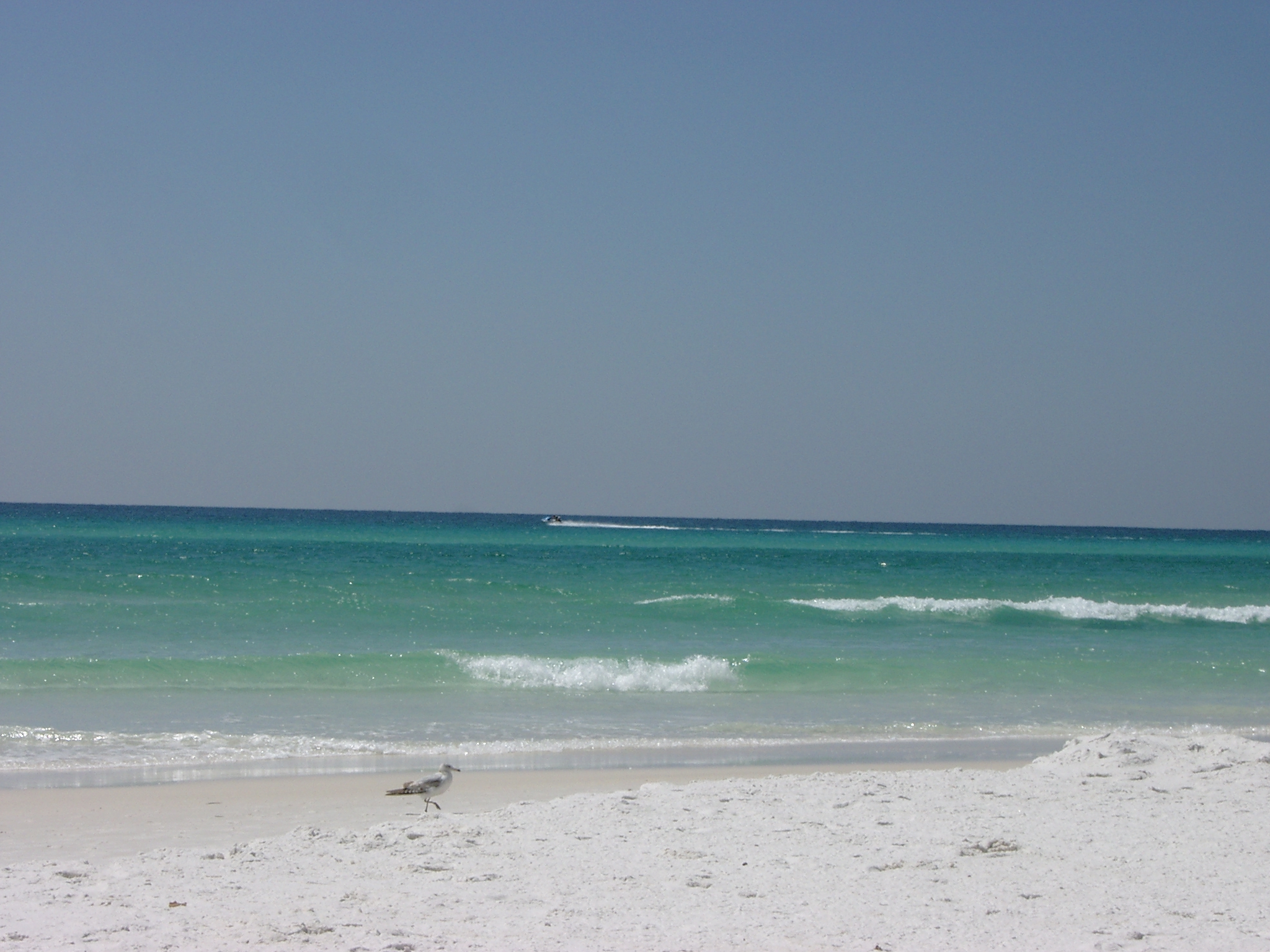 Destin, Florida’s snow white beach and emerald water on April 1, 2004. Should we be optimistic that BP’s oil leak won’t change the color of the water or beach?