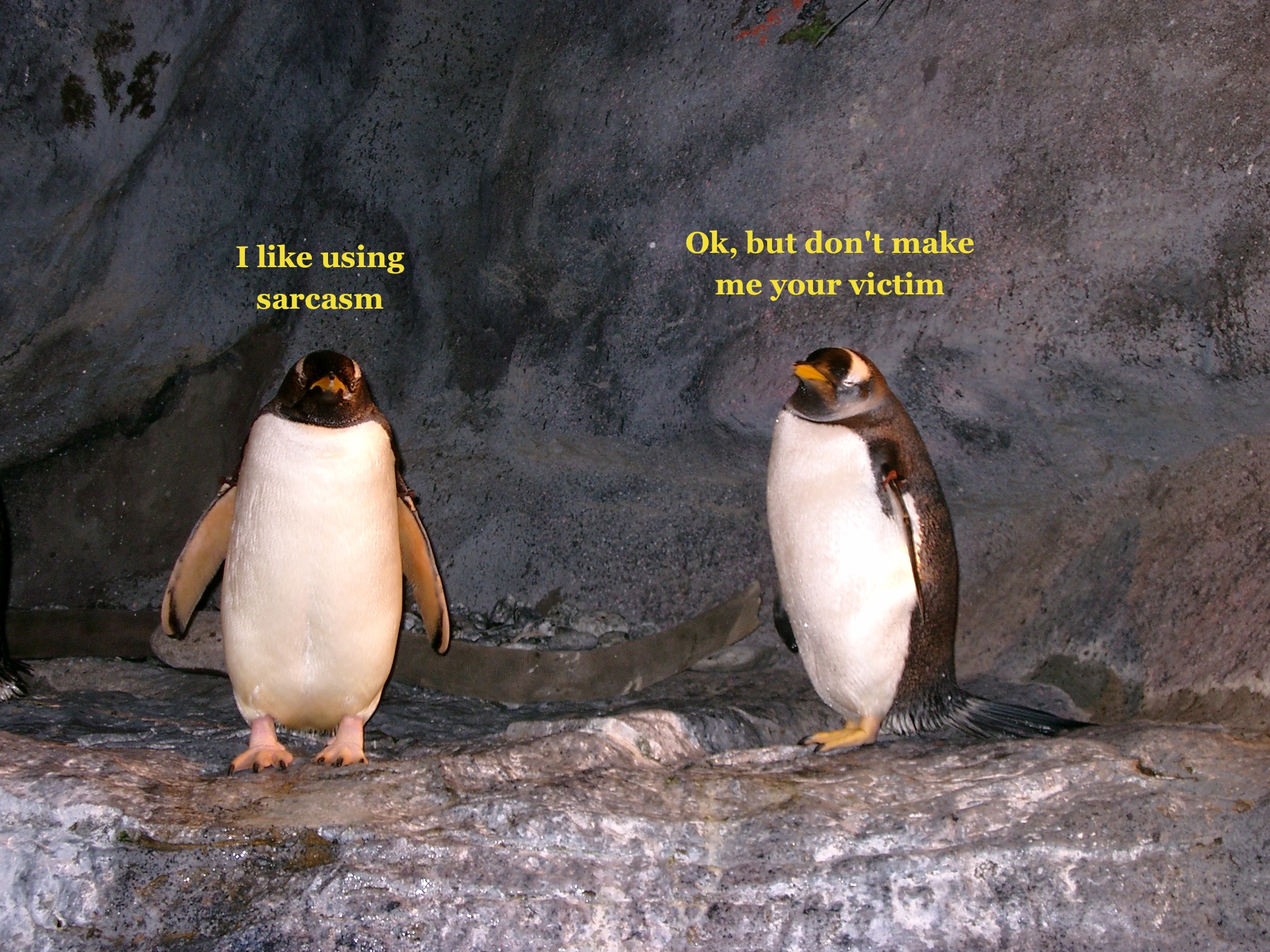 Regarding the use of sarcasm, I have often proclaimed that sarcasm is humor that always has a victim. I know that many times, when using sarcasm, irony and satire is involved. How ironic from a satirical point of view! :-) From my point of view, sarcasm, though sometimes extremely funny and entertaining, is not a form of humor that should be emphasized nor strived for. Now, I realize that I might be in the minority regarding the use of sarcasm, but, sarcastically speaking, what does the majority know? :-)