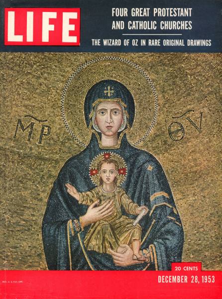LIFE cover 12-28-1953: Mosaic of the Madonna and Child on a background of gold at the Basilica of St. Mark