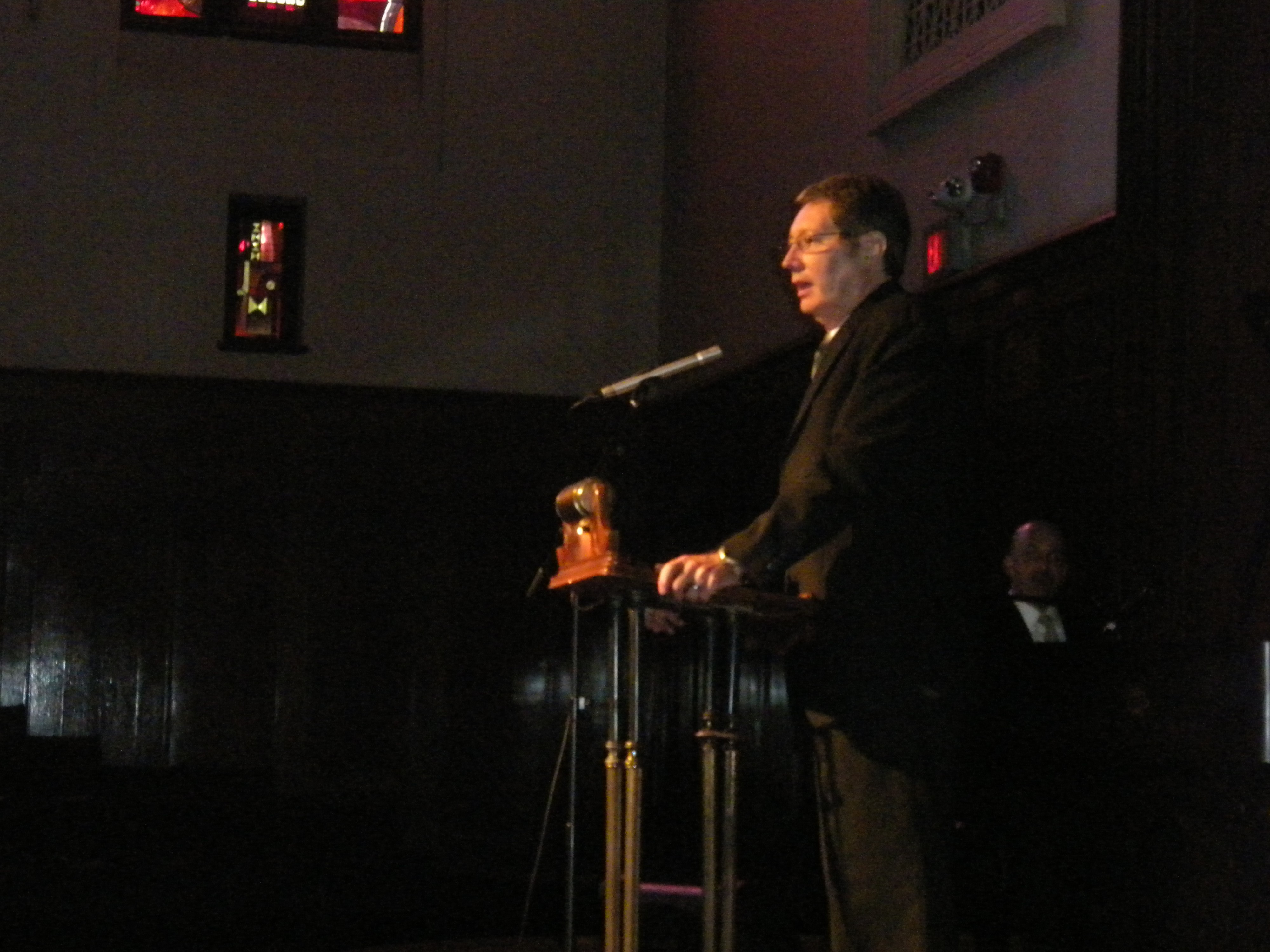 Dan Martin, as the master of ceremony, beginning the Memorial Concert for Erik