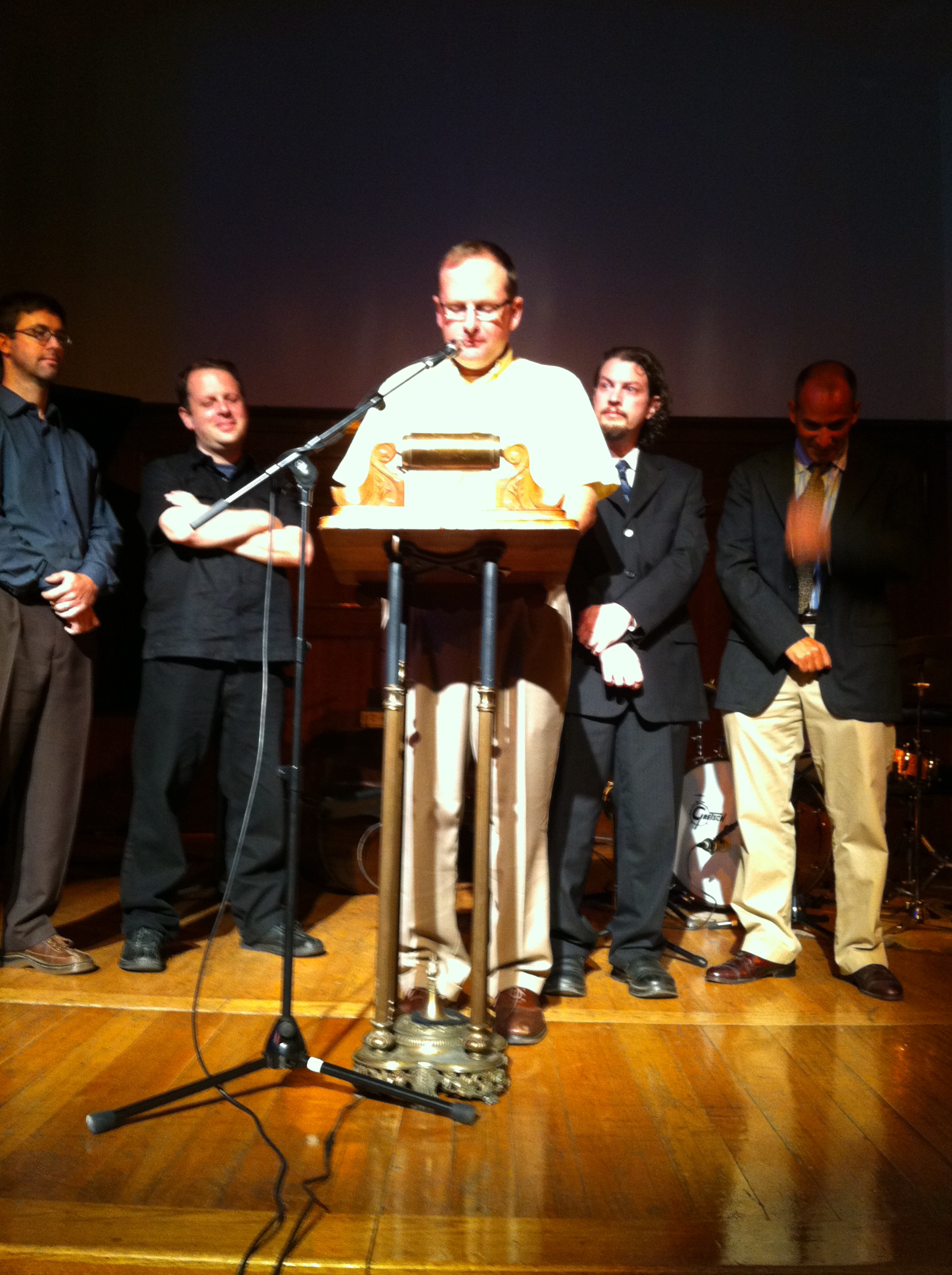 Peter Martin, Chris Thomas, Maurice Carnes, and audience at the beginning to the Celebration of Life Memorial Concert for Erik G. Rogers