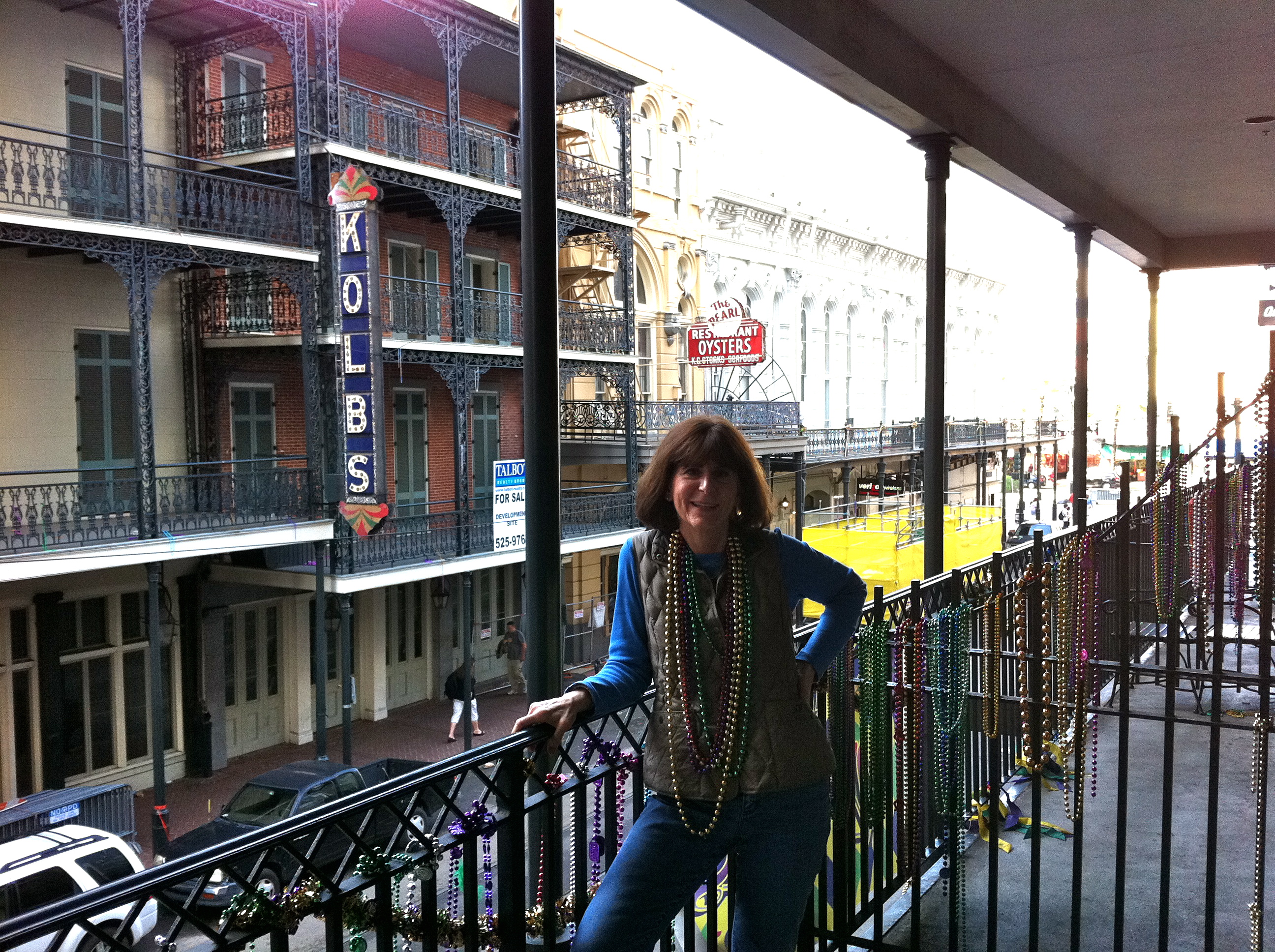 The Big Easy offers many balconies for easy viewing of the Big Easy. Here's my lovely wife "easily" celebrating Mardi Gras the day after Fat Tuesday.